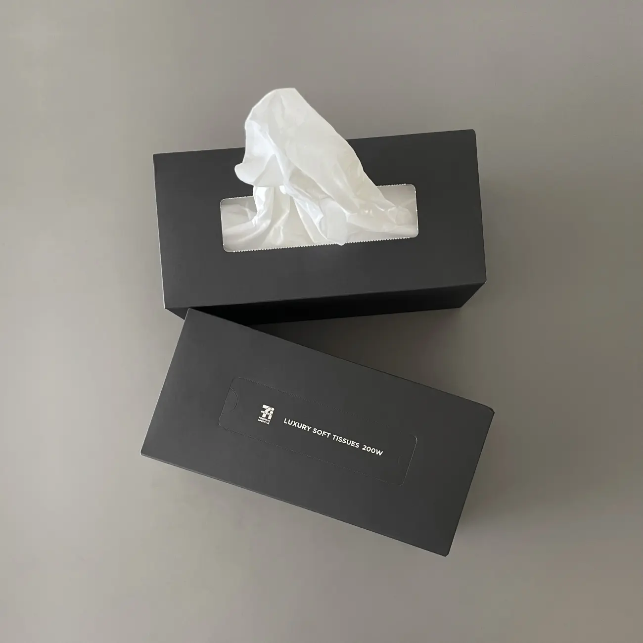 ストックがなくなると横断歩道を渡り向かいのコンビニエンスストアまで足を運びます。そこで手にするのが、黒い箱のティッシュ。いまのところティッシュは、こちら一択です。