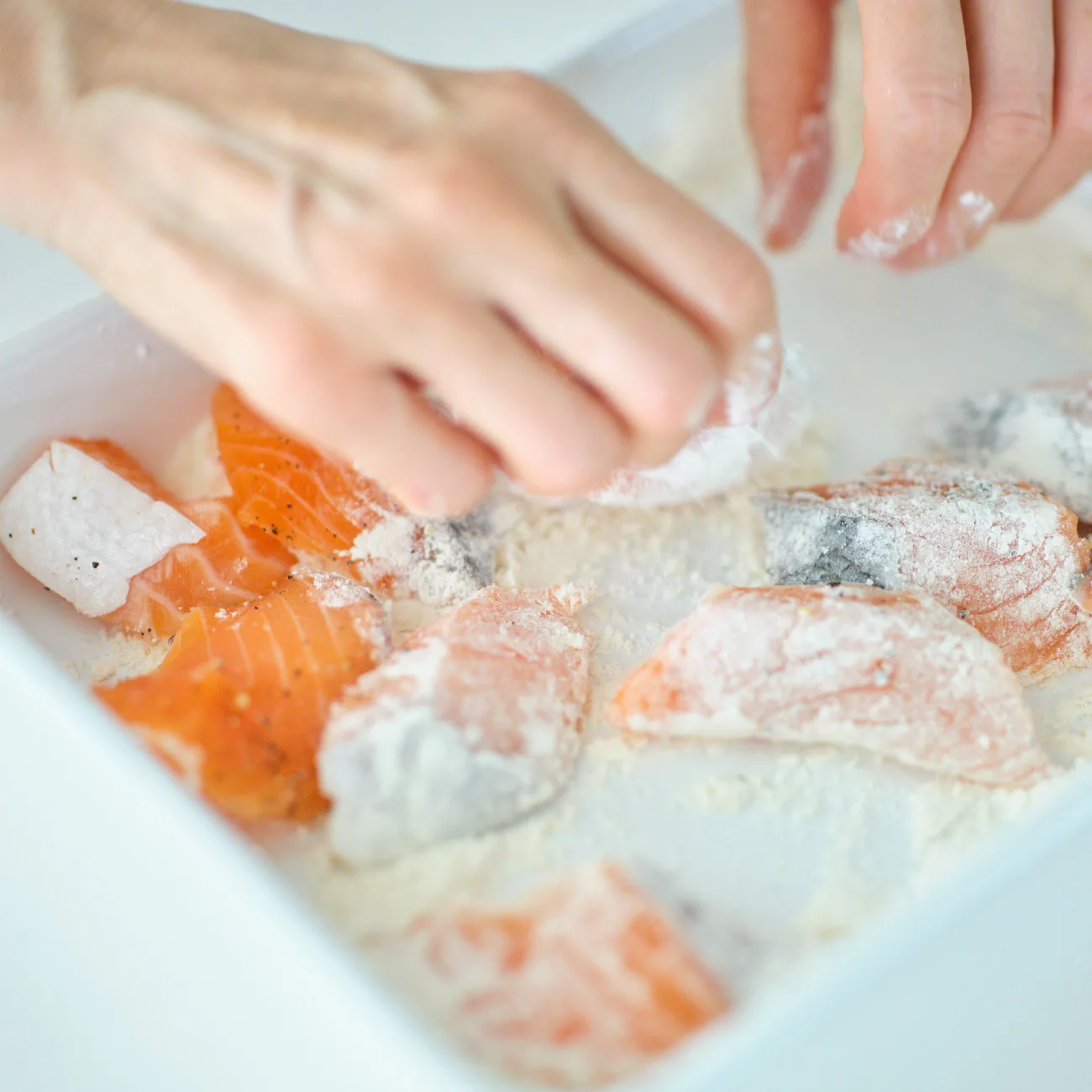 鮭は最後に高温で揚げると