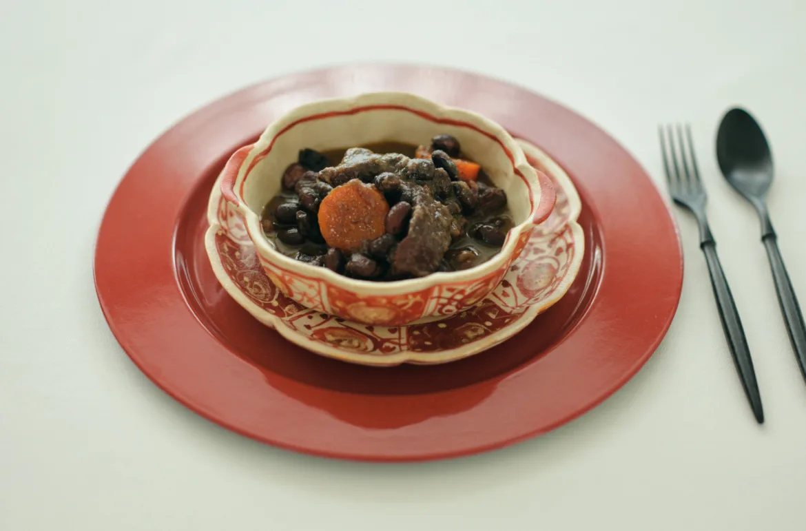 「フェジョアーダ」(黒いんげん豆と肉の煮込み)をイメージした、