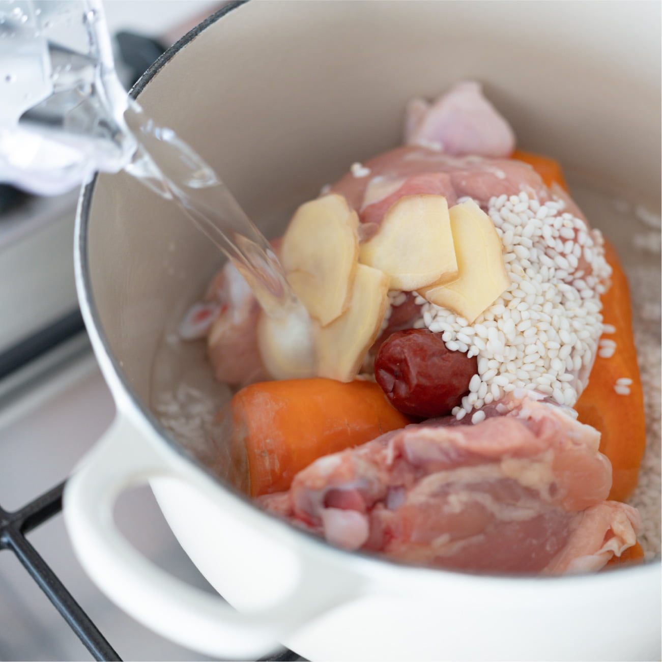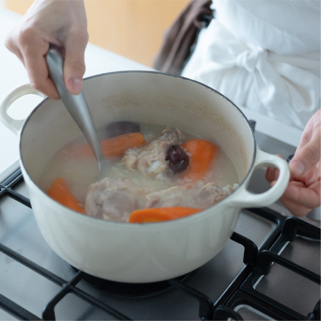 春が近づいているとはいえ、まだまだ肌寒い季節。韓国を代表する養生食・参鶏湯(さむげたん)に、「肝」をいたわるにんじんをたっぷりと加え、体も心も温めましょう。