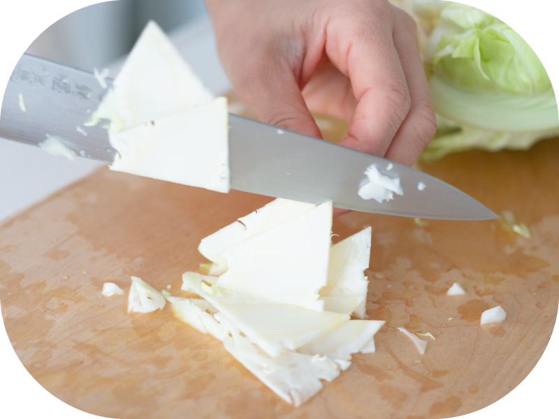 薄切りにしてさらに細切りにすると食べやすい。