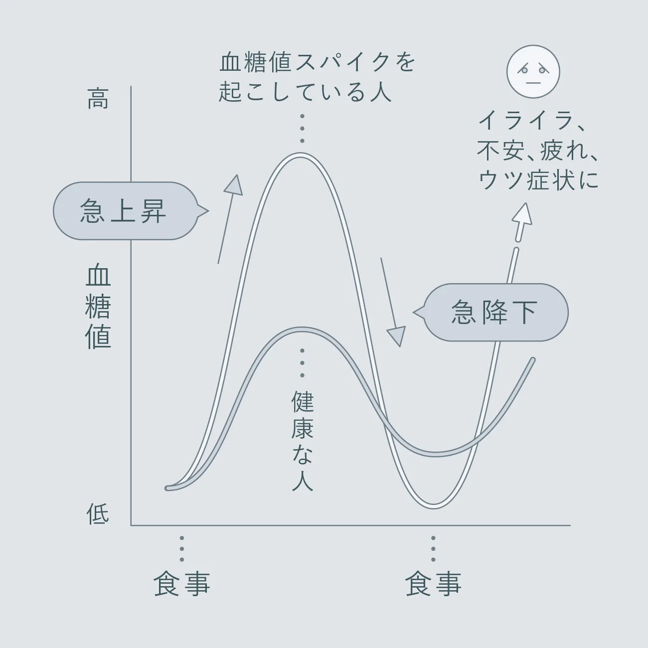 < 血糖値の乱高下が、心のアップダウンにも直結 >